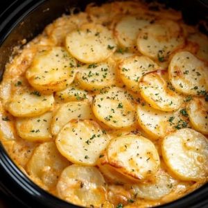 These Slow Cooker Scalloped Potatoes deliver a creamy, savory, and cheesy side dish with minimal effort. Thinly sliced potatoes are cooked in a rich, seasoned cream sauce…
